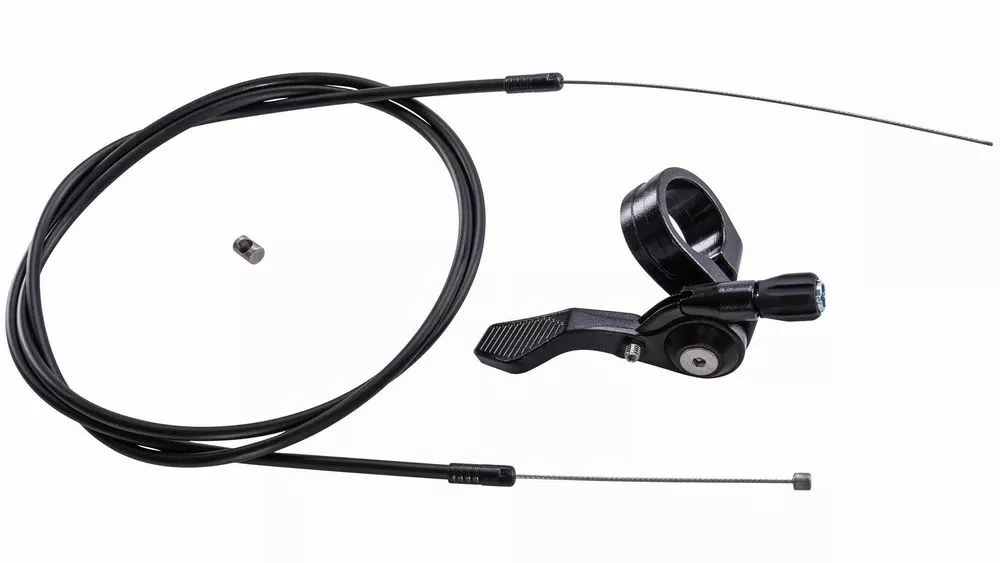 Die Sattelhöhe kannst du ganz einfach per Schalter am Lenker verstellen. Durch Betätigen des Hebels senkt oder hebt sich der Sattel dann stufenlos. Die extra Teflon-Beschichtung schützt die Stütze zum einen vor Lackschäden, zum Anderen lässt sich die Sattelhöhe dadurch flüssiger einstellen. Maximal zulässiges Fahrergewicht: 120 kg.