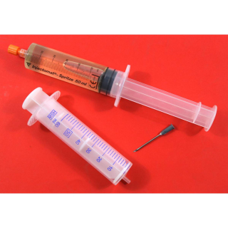 Lieferumfang: Befüllspritze mit 60ml Getriebeöl & Kanüle sowie einer leeren 60ml Spritze