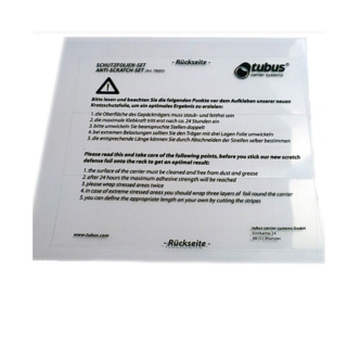 Schutzfolien-Set mit 3 Folien (14x4cm) zur Vermeidung von Kratzern für alle tubus-Gepäckträger.